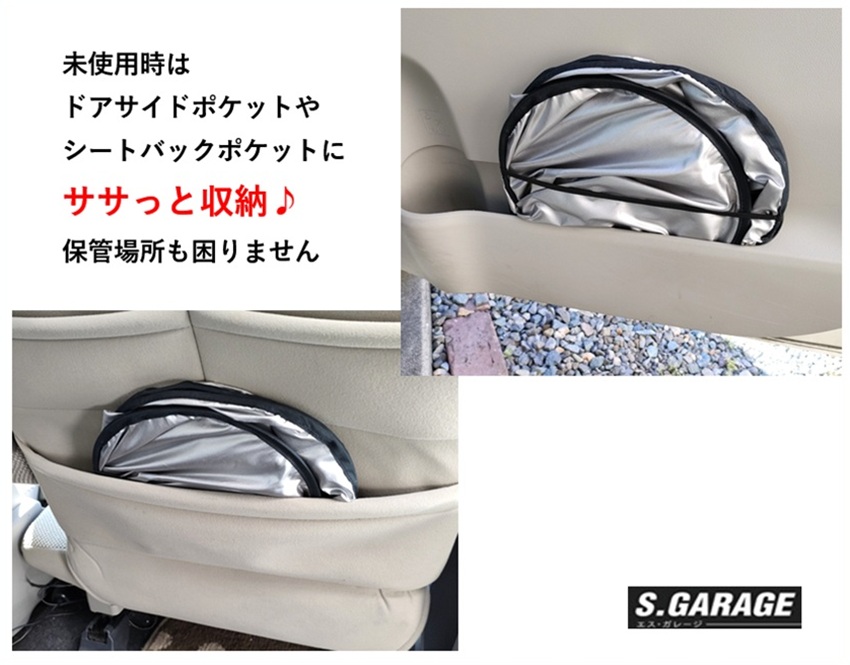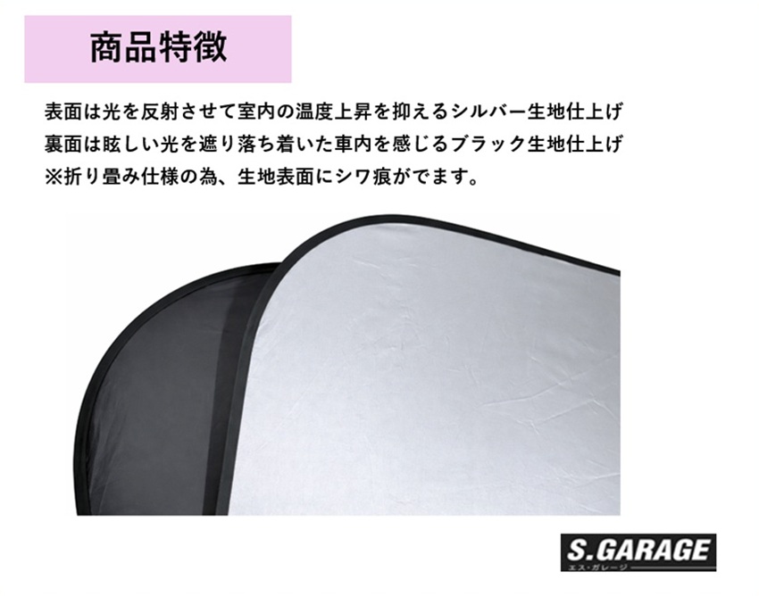 暑い季節の車内の温度上昇を抑え、外部からの視線を遮りプライバシーを守ります 表面:シルバー生地 / 裏面:黒生地